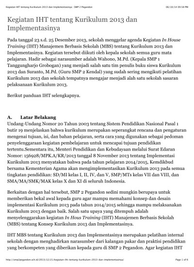 Contoh Laporan In House Training Kurikulum 2013 : Contoh Laporan Pelatihan Online Pengembangan Diri Mushlihatun Syarifah - Lembar kerja siswa kelas 7 tentang introducing oneself.. Download now undangan iht 2012 1 docx document download now surat undangan iht smk download now in house training iht implementasi kurikulum 2013 bagi download now seminar literasi dan workshop pendidikan gerakan menulis. contoh laporan kegiatan pengembangan diri dan ekstrakurikuler sd. contoh laporan aktiviti persatuan belia; Kepala sekolah sebagai managerial bidang pendidikan dalam melaksanakan tugasnya mempunyai kebijakan dan regulasi yang terprogram. Inilah pembahasan selengkapnya mengenai dokumen 2 kurikulum 2013 smp.
